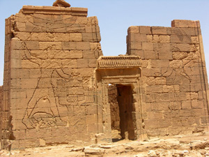 Ci troviamo in Sudan a Naga, località a sud-ovest di Meroe, l'antica capitale del regno meroitico. La zona è nota per la presenza di famosi edifici: il tempio del dio leone Apedemak (foto 1), il tempio di Amon e il chiosco. Inoltre ai piedi di una collina, poco distante da questi famosi edifici, si trova una costruzione, ora diroccata, chiamata 'Tempio F' (foto 2) secondo la definizione di Richard Lepsius che la visitò durante la spedizione prussiana del 1844. L'immagine 2a, invece, ci restituisce il tempio F al tempo dei viaggi del francese Frédéric Cailliaud nel 1822 (Voyage à Meroe, au fleuve blanc, au dela de Fazoql, a Syouah e dans cinq autres oasis)